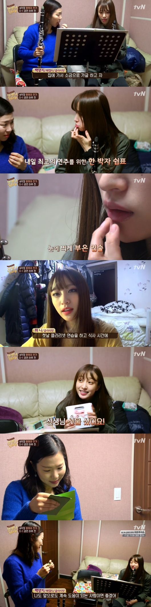 하니도 곡별로 최종 점검에 나섰다. 하니는 입술이 퉁퉁 부을 정도로 클라리넷 연습에 매진, 패컬티로부터 “진짜 많이 좋아졌다”는 아낌없는 칭찬을 받았다.