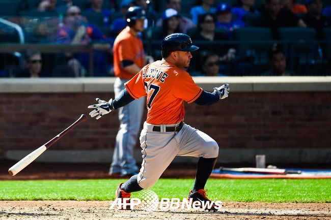 지난 시즌 타율, 최다안타, 도루에서 리그 1위를 차지한 휴스턴 애스트로스 호세 알튜브. 타석당 3.11개의 투구만을 맞이한 것으로 집계 돼 메이저리그 최소를 기록했다. ⓒAFPBBNews = News1(무단전재 및 재배포 금지)