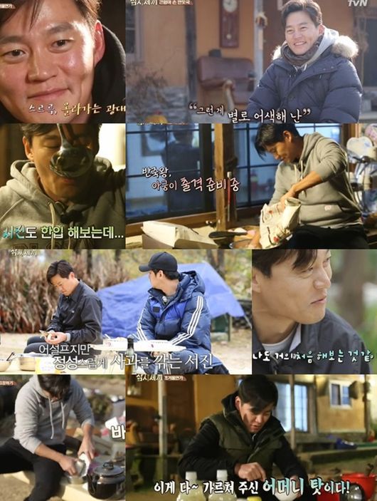 ‘꽃보다 할배’가 끝난 후 이서진이 방송에서 요리하는 모습을 볼 수 있거나 그가 실제로 더 이상 요리하지 않을 거라는 예상은 깨졌다. 이서진은 아궁이에 불을 지피고 마늘을 빻고 수수를 벴다.
