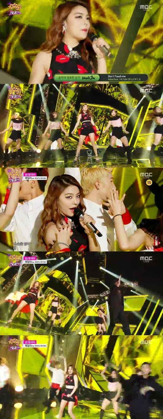 에일리는 27일 방송된 MBC 가요프로그램 '쇼! 음악중심'은 연말 결산 특집에 출연해 '손대지마'로 무대를 꾸몄다.