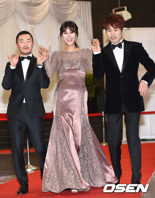27일 오후 서울 여의도 KBS홀에서 진행된 '2014 KBS 연예대상'에서 개그맨 안일권, 정승환, 개그우먼 성현주가 레드카펫을 밟고 있다.