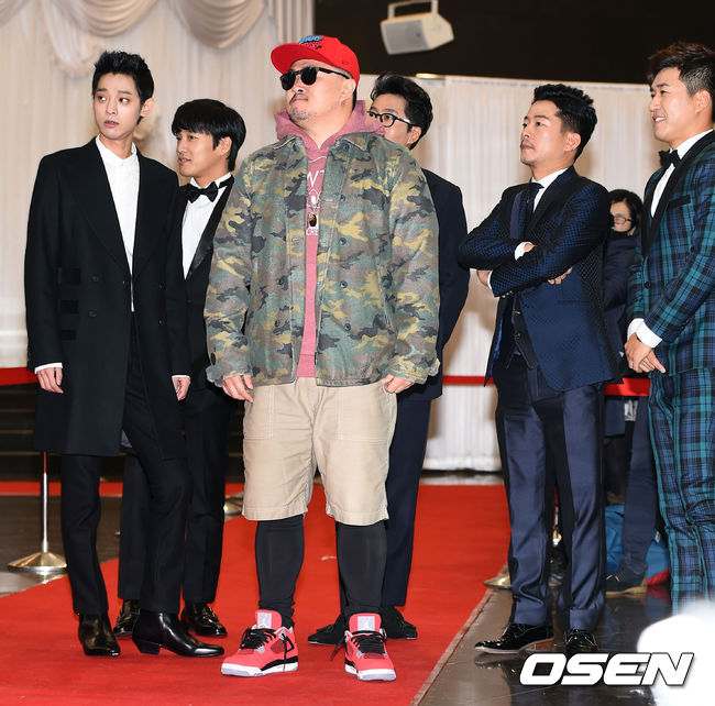 27일 오후 서울 여의도 KBS홀에서 진행된 '2014 KBS 연예대상'에서 1박2일 팀이 레드카펫을 밟고 있다.