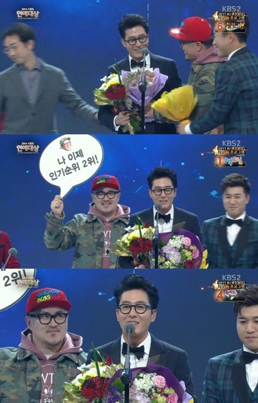 또한 김주혁의 수상에 데프콘과 김종민이 함께 무대에 올라 기쁨을 나눴다.