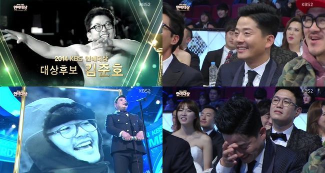 그의 지지자로 김준현이 무대에 올라 "선배이자 친한 형이자 나의 사장이었던 영원한 우리 보스"라며 "시를 한 편 준비했다. 연예대상 후보 오른 자랑스러운 준호일세. 모든 후배 존경받는 '개콘' 맏형 준호일세. '1박 2일' 국민 얍쓰, 시청자도 사랑하네. 작년 겨울 내 대신에 '1박 2일' 투입돼 잘나가는 준호 모습 볼때마다 땅을 치네. 지금 나는 방송 없네, '개콘'마저 쉬고 있네. 허나 나는 후회 없네. 준호 대상 받는다면. KBS에 신의 한수, 대한민국 최고 광대, 주세주세 대상 주세"라고 밝혔다.