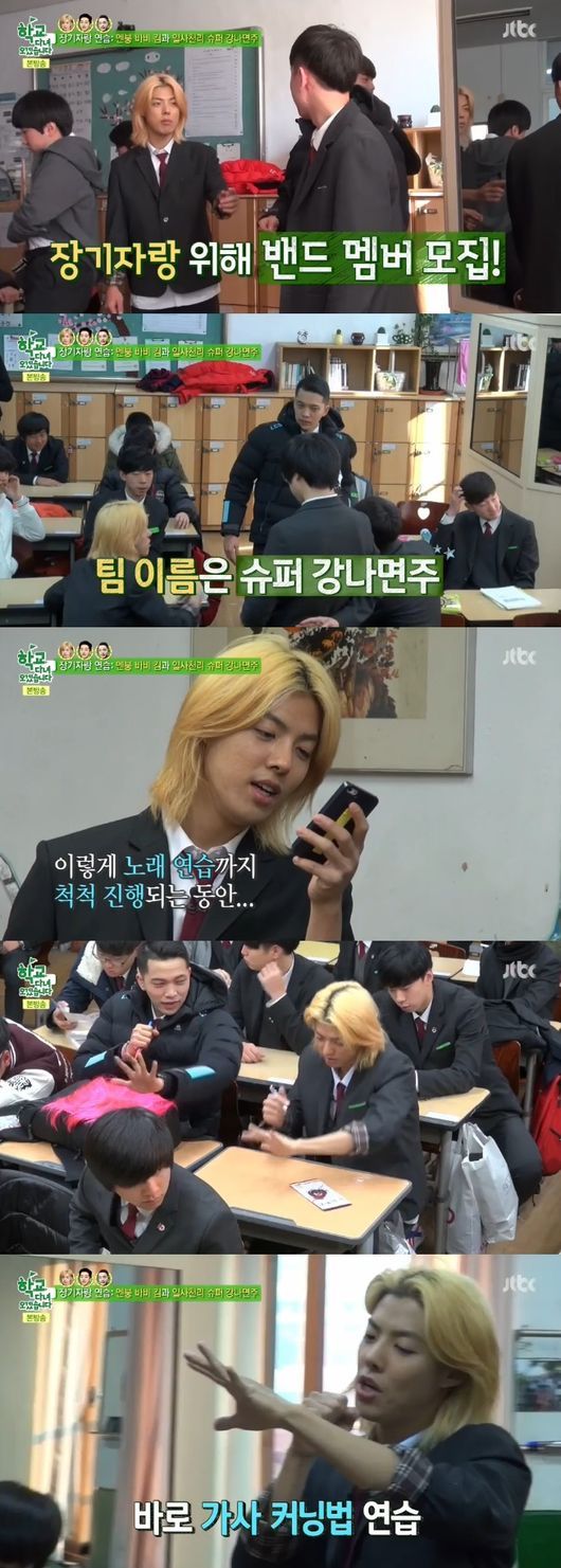 밴드 이름은 '슈퍼 강나면주'. 노래는 지드래곤의 '삐딱하게'였다. 강남은 가사를 외우고 나머지 멤버들은 연주 연습에 매진했고 특히 강남은 가사를 외우지 못해 손등에 가사를 적어넣기 신공을 보여줬다.