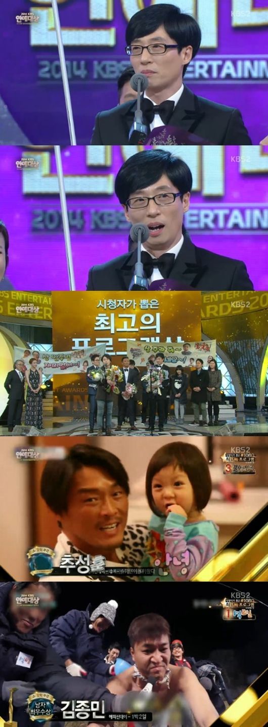 ‘슈퍼맨이 돌아왔다’와 ‘1박2일’ 등 ‘해피선데이’ 한 지붕 아래 두 프로그램의 치열한 경합이 예상됐지만, 대상은 결국 유재석에게 돌아갔다.
