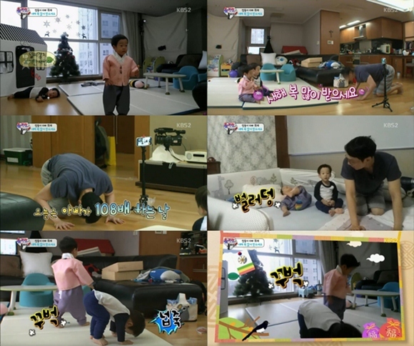 28일 오후 방송된 KBS 2TV 예능프로그램 '해피선데이-슈퍼맨이 돌아왔다'에서는 이휘재가 다가오는 새해를 맞아 쌍둥이에게 세배를 가르쳐주는 모습이 그려졌다.