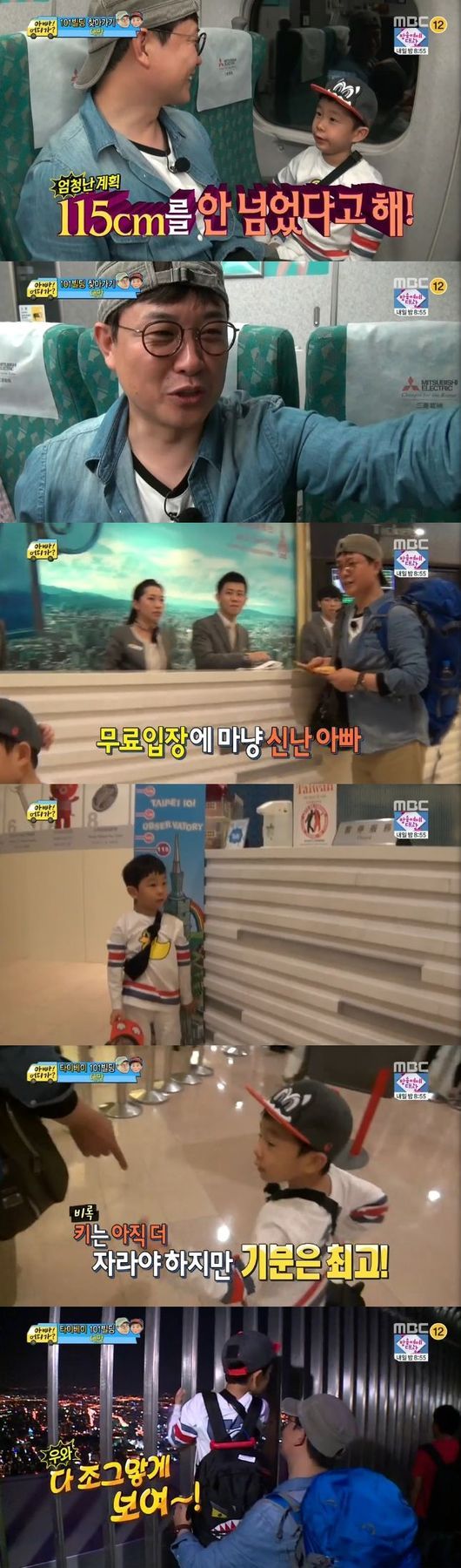 민율은 28일 오후 방송된 MBC 예능프로그램 '일밤-아빠!어디가?'(이하 '아빠어디가')에서 101빌딩은 151cm 미만의 어린이는 무료로 입장이라는 말을 듣고 걱정했다. 자신의 키가 행여 넘을까 걱정된 것.