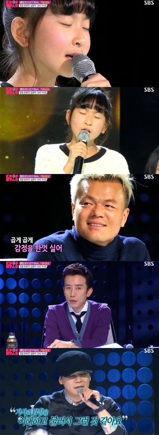 마지막으로 박진영은 "고치면 정말 빨리 늘 것 같다. 숨소리를 듣는데 어깨가 들리는 걸 알았다"면서 진심어린 조연을 건네기도 했다.