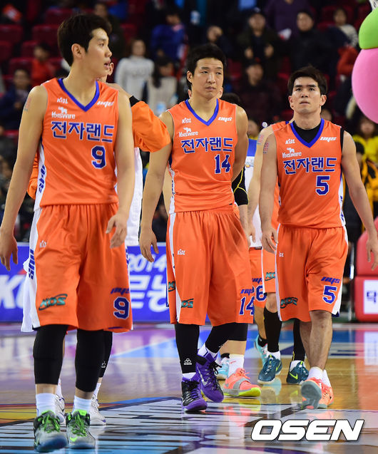 경기에서 패한 전자랜드 선수들이 아쉬워하고 있다./ youngrae@osen.co.kr
