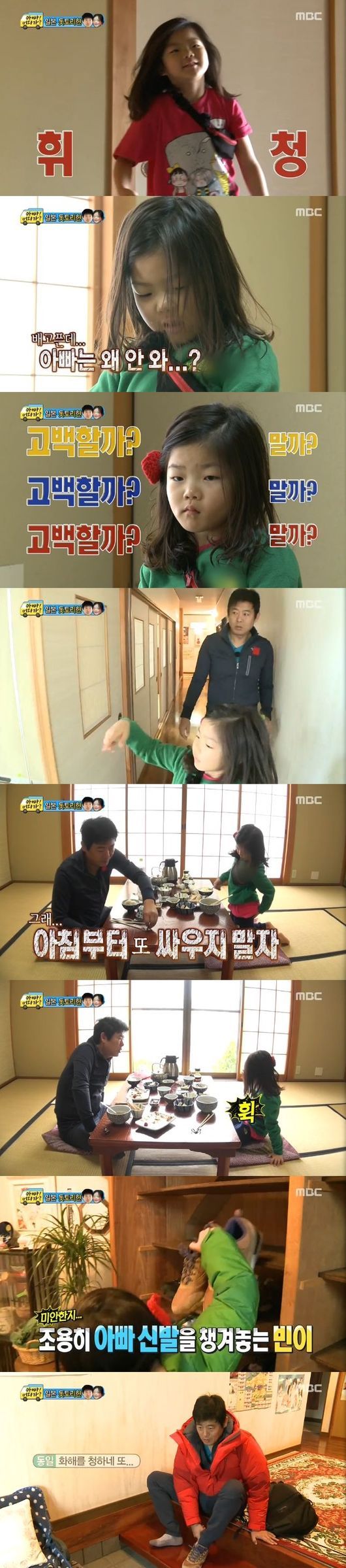 빈은 28일 오후 방송된 MBC 예능프로그램 '일밤-아빠!어디가?'(이하 '아빠어디가')에서 아빠와 함께 일본 돗토리현의 한 민박에서 하루를 보냈다.