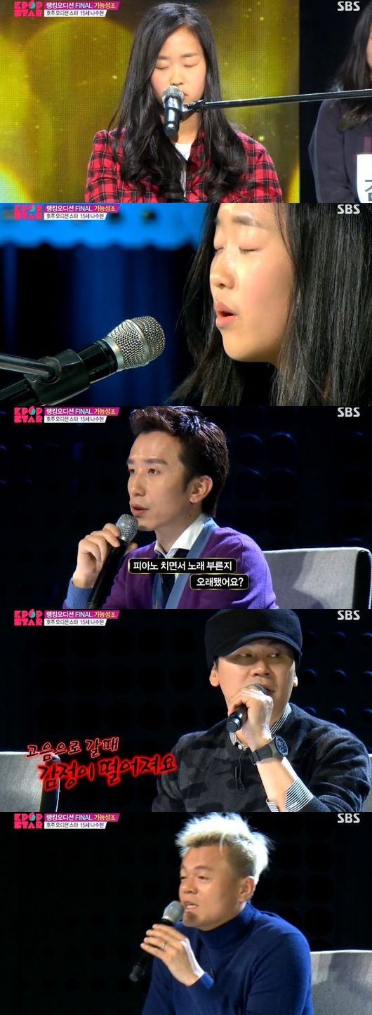 이어 양현석은 "노래는 참 잘했는데, 이 노래를 들으며 눈물이 날 것 같지는 않았다"면서 "고음 올라갈 때 감정 전달이 떨어진다"고 혹평했다.