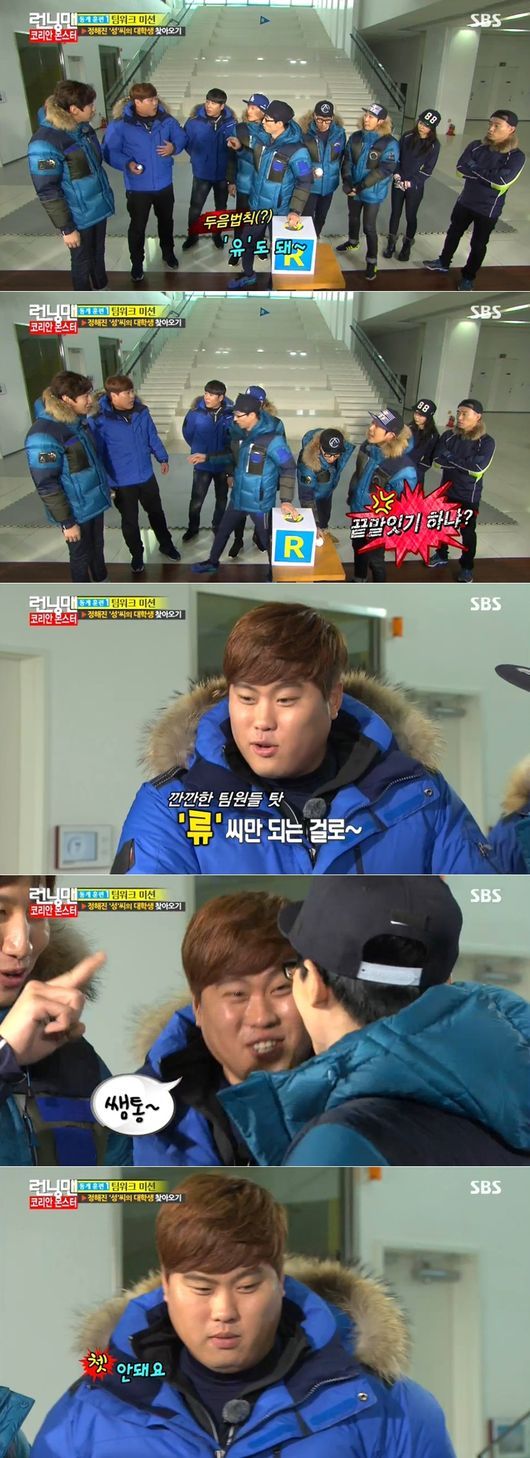 류현진은 28일 오후 방송된 SBS 예능프로그램 ‘일요일이 좋다-런닝맨’(이하 ‘런닝맨’)에서 멤버들과 함께 이성 파트너를 데려오는 미션을 받았다.
