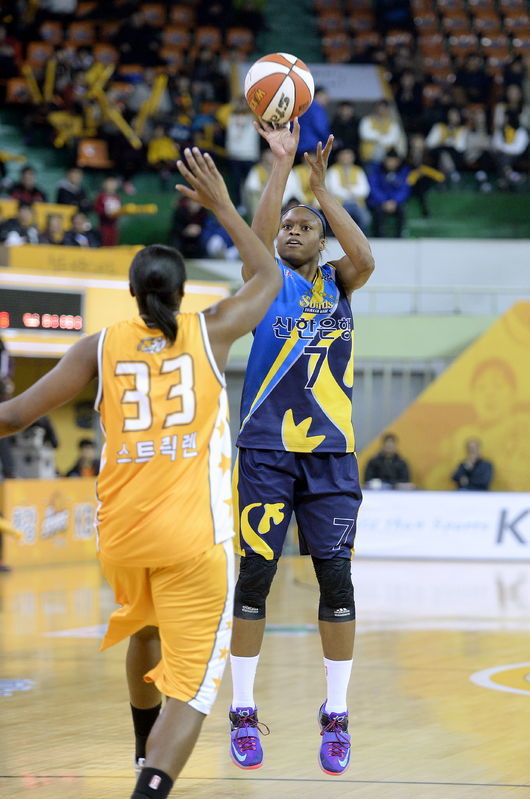 팽팽한 승부의 균형은 4쿼터에도 계속 됐다. 승부처에서 빛난 것은 역시 에이스. 접전에서 해결사 크리스마스의 존재감이 두드러졌다. 4쿼터 중반 속공과 자유투 그리고 골밑슛에 3점슛까지 9점 연속 올리며 경기 주도권을 신한은행 쪽으로 가져온 것이다. 변연하가 부상으로 빠진 KB스타즈는 고비를 넘기지 못하고 무릎을 꿇었다.
