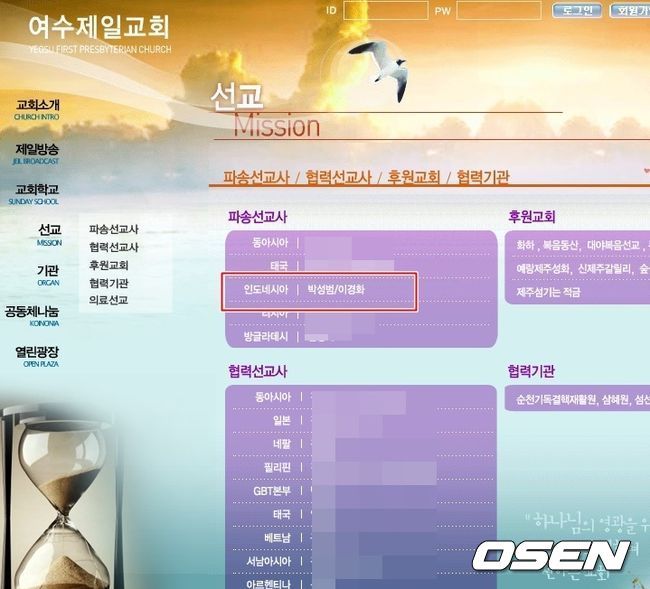 박성범 이경화 선교사의 이름이 확인 된 여수제일교회 홈페이지 캡처. 아래는 에어아시아 소속 항공기. /ⓒAFPBBNews = News1(무단전재 및 재배포 금지)