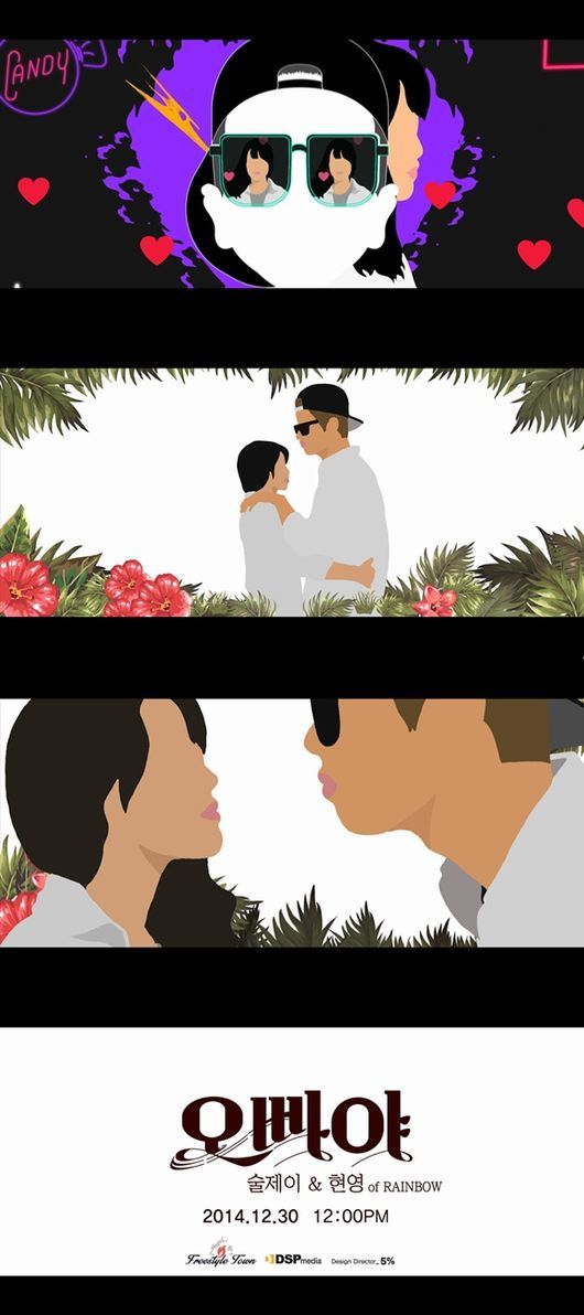 걸그룹 레인보우의 조현영이 래퍼 술제이와 입을 맞춘 커플송 ‘오빠야’ 뮤직비디오 트레일러를 공개했다.