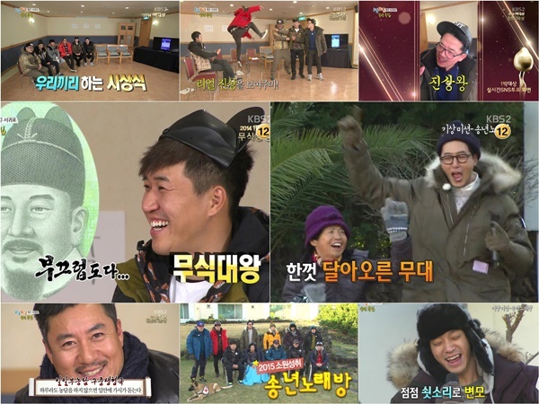 ‘1박 2일’이 1년 동안 함께한 멤버들과 스태프, 그리고 특급 게스트까지 모여 그 어느 시상식보다 화려하고 아름다운 광경을 만들어냈다. 의미와 재미, 감동까지 다 잡으며 시청률까지 잡은 ‘1박 2일’은 14회 연속 동시간대 1위의 기록을 세우며 아름다운 한 해 농사를 마무리 지어 눈길을 끌었다.