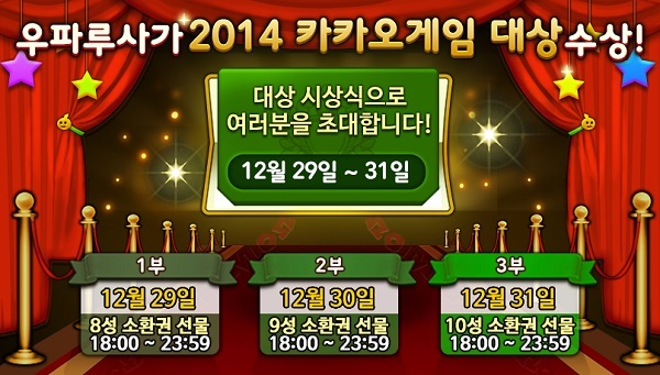 NHN스튜디오629가 개발하고 NHN엔터테인먼트가 서비스하는 '우파루사가'가 2014 카카오게임 대상에 선정되어 수상 기념 이벤트를 진행한다.