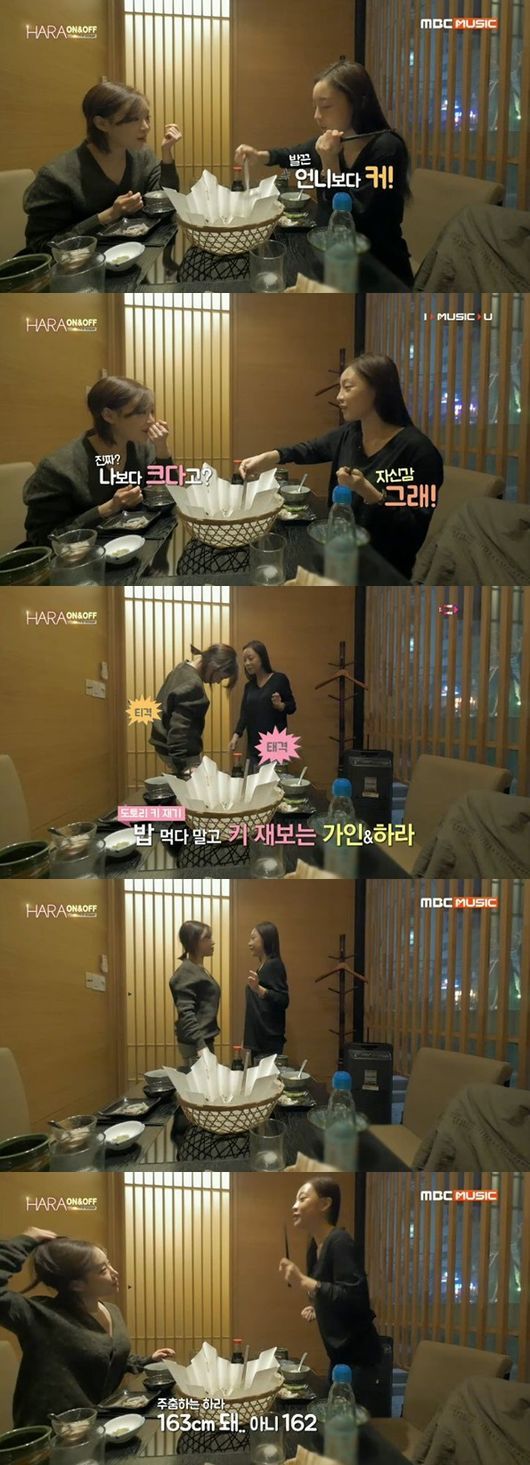 29일 오후 방송된 MBC뮤직 '하라 온앤오프(ON&OFF)'1회에서 구하라는 가인을 만나 수다를 떠는 모습이 그려졌다.