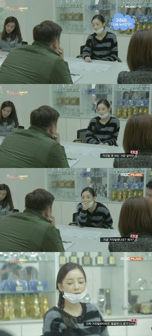 29일 오후 방송된 MBC뮤직 '하라 온앤오프(ON&OFF)'1회에서 구하라는 제작진과의 첫 만남에서 자신에 대해 "난 거짓말을 못하는 사람이다"고 밝혔다.