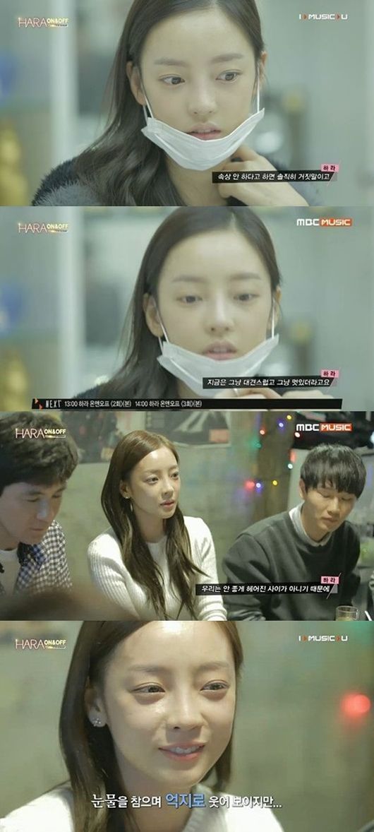29일 낮12시부터 전편 연속방송된 MBC뮤직 '하라 온앤오프(ON&OFF)'에서는 제작진과의 회의에서, 그리고 팬들과의 만남에서 두 탈퇴 멤버에 대한 이야기를 꺼내는 하라의 솔직한 모습이 그려졌다.