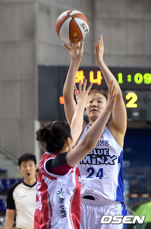 2쿼터 삼성 배혜윤이 점프슛을 시도하고 있다.