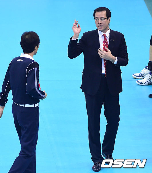 29일 오후 수원 실내체육관에서 열린 '2014-2015 NH농협 V-리그' 한국전력과 LIG 손해보험의 경기 1세트 문용관 감독이 비디오판독을 요청하고 있다.