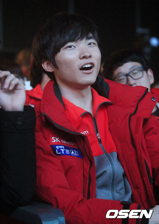 29일 오후 서울 서초 강남 넥슨 아레나에서 'SK텔레콤 스타크래프트2 프로리그 2015시즌' 진에어와 SK텔레콤의 1라운드 2주차 경기가 열렸다. 세계 최고의 LOL 미드 라이너로 인정받는 '페이커' 이상혁이 스타2 팀을 응원하기 위해 프로리그 현장을 찾았다.