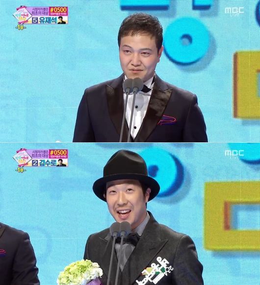 하하는 “사실 신인상, 우수상 다 필요 없다. PD선생님들이 알아주신다는 것 만으로도 제 인생에 큰 행복이다”라고 벅찬 소감을 전했다. ‘무한도전’에서 올해 하차한 길과 노홍철을 언급하며 “함께 하지 못해 아쉽다”고 말했다.