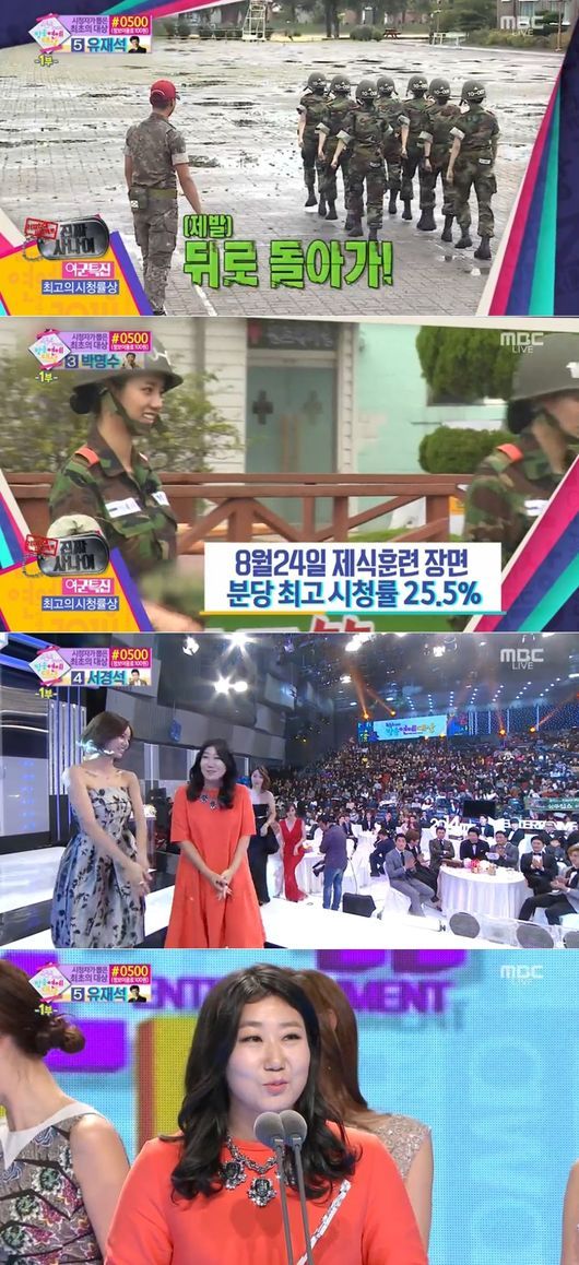 ‘진짜 사나이’ 여군특집은 29일 오후 8시 55분부터 서울 상암 MBC 신사옥에서 열린 MBC '방송연예대상'에서 시청률 상을 수상했다. 지난 8월 24일 방송된 제식훈련 장면이 분당 최고 시청률 25.5%를 기록한 것.