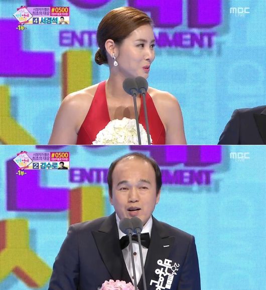 두 사람은 29일 오후 8시 55분부터 서울 상암 MBC 신사옥에서 열린 MBC '방송연예대상'에서 인기상 버라이어티부문에서 수상의 영예를 안았다.