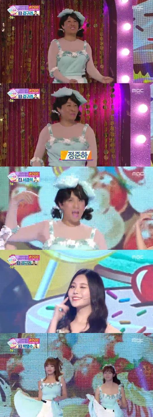 무대 중간에는 여성들의 몸 2배에 달하는 정준하가 깜짝 등장, 걸스데이로 변신해 더욱 큰 웃음을 줬다.