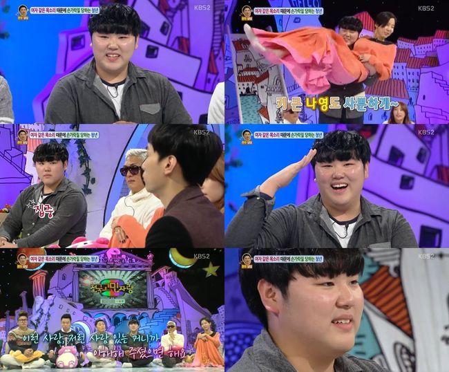 그가 "여자친구를 사귀고 싶다. 상남자다"고 주장하며, 출연자들을 차례로 한 명씩 안아 올리거나, 목젖이 살에 묻혀 잘 보이지 않는다는 등의 모습들은 과장스러워 보이면서도 그만큼 절박한 모습을 드러내는 역할을 하기도 했다.