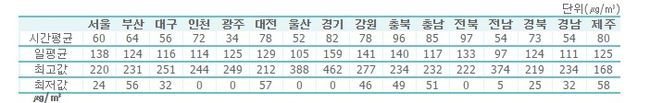 특히 경기북부와 강원영서는 일평균 151㎍/㎥이상으로 '매우나쁨' 수준이라 시민들의 주의가 요구된다.