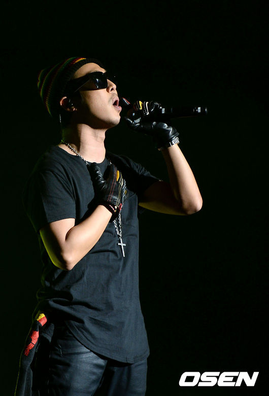 가수 하하가 화려한 공연을 펼치고 있다.
