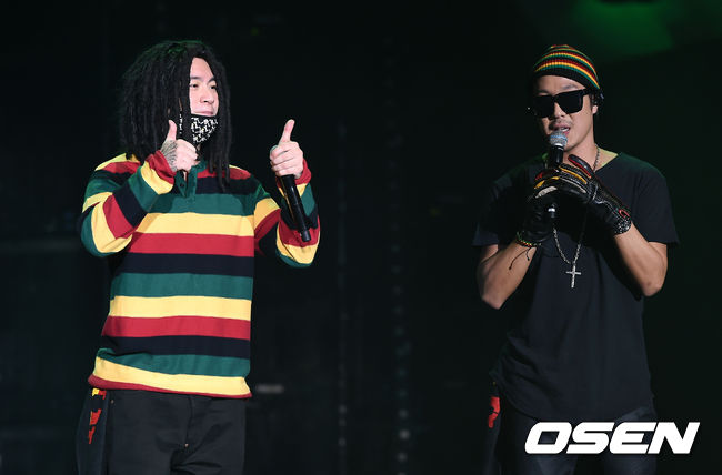 가수 스컬과 하하가 화려한 공연을 펼치고 있다.