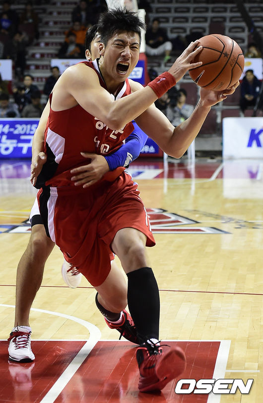 30일 오후 안양실내체육관에서 열린 '2014-2015 KCC 프로농구' 안양 KGC와 서울 삼성의 경기, 4쿼터 안양 양희종이 돌파를 시도하고 있다.