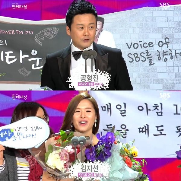 공형진과 김지선, 김일중은 30일 오후 8시 55분부터 서울 삼성동 코엑스 열린 SBS '연예대상'에서 각각 파워FM과 러브FM 라디오DJ상을 품에 안았다.