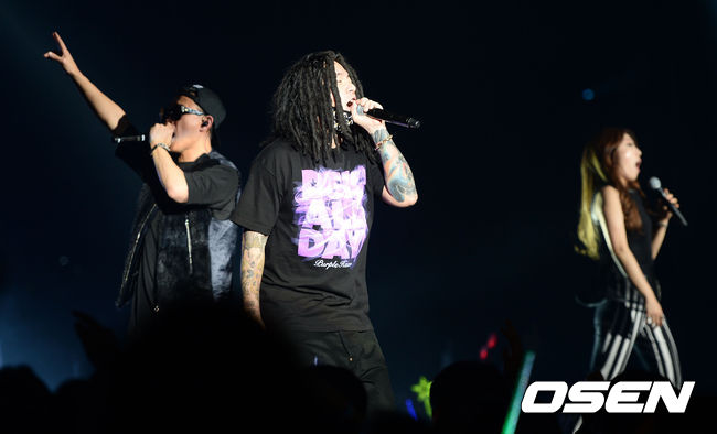 개리, 스컬, 정인이 화려한 공연을 펼치고 있다.
