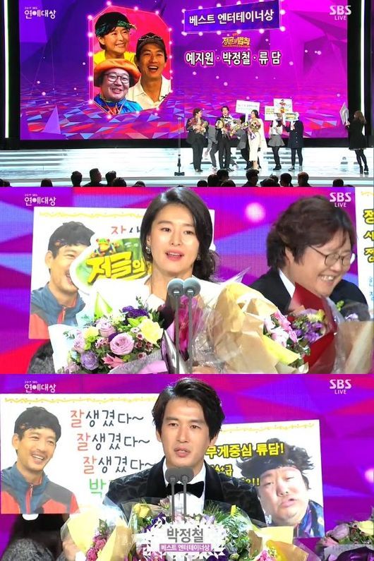 '정글의 법칙'에 출연했던 예지원, 박정철, 류담이 SBS '연예대상'에서 베스트엔터테이너상을 수상했다.