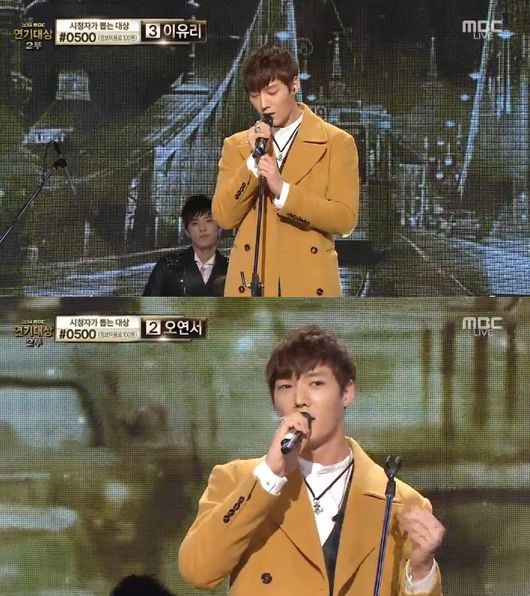 이날 MBC 연기대상은 신동엽과 수영의 진행으로 이뤄졌다. 대상 후보는 '마마'의 송윤아, '왔다 장보리'의 이유리, 오연서가 올랐으며 이들 중 실시간 문자투표로 가장 높은 득표를 한 후보가 대상으로 선정된다.