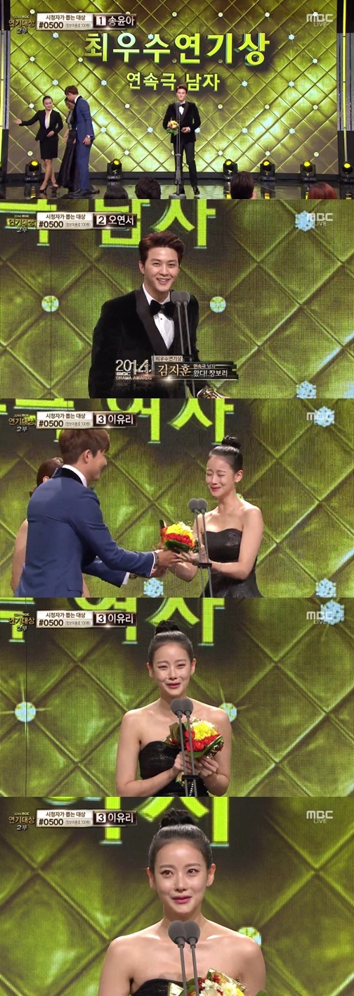 김지훈과 오연서가 2014 연기대상에서 최우수 연기상을 수상했다.