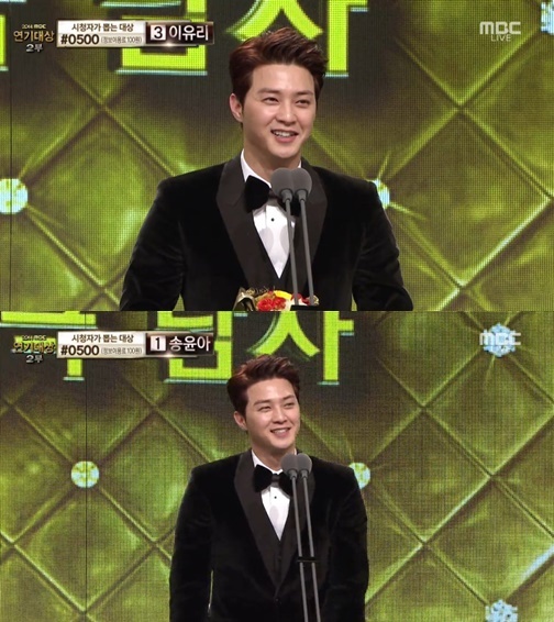 이날 MBC 연기대상은 신동엽과 수영의 진행으로 이뤄졌다. 대상 후보는 ‘마마’의 송윤아, ‘왔다 장보리’의 이유리, 오연서가 올랐으며 이들 중 실시간 문자투표로 가장 높은 득표를 한 후보가 대상으로 선정된다.