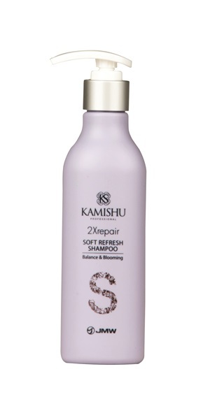 JMW의 ‘카미슈 투엑스리페어 소프트 리프레시 샴푸'는 부드러운 거품으로 저자극 세정이 가능한 두피, 머릿결 개선 샴푸로써 혈액 성분과 동일한 헤마틴이 단백질 결합을 촉진하여 모발재생에 도움을 준다. 또한 발모제에 사용되는 폴브산 성분이 함유 돼 세포재생촉진 및 오염물질 해독효과가 있다.