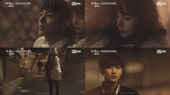 31일 Mnet 측은 ‘칠전팔기 구해라’의 일부 장면을 짤막하게 공개해 눈길을 끌고 있다. 여주인공 구해라(민효린 분)가 강세종(곽시양 분)의 등 뒤에 업혀있는데, 우연히 강세찬(B1A4 진영)을 마주치자 세 사람 모두 깜짝 놀라는 모습이다. 이어 세찬의 “형, 참 사랑 어렵다”라는 내레이션이 더해지며 쌍둥이 형제와 해라의 안타까운 관계를 예고했다. 복잡미묘한 표정의 세종과 어쩔 줄 몰라 하는 해라, 잔뜩 굳어버린 세찬의 표정까지 짧지만 강렬한 인상을 남겼다.