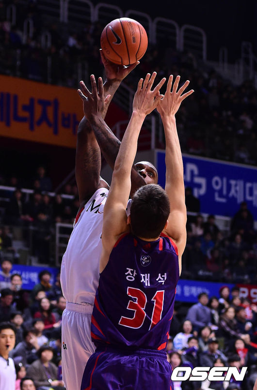 31일 오후 고양체육관에서 열린 '2014-2015 KCC 프로농구' 고양 오리온스와 울산 모비스의 경기 2쿼터 라틀리프가 슛을 시도하고 있다.