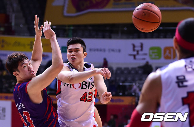 31일 오후 고양체육관에서 열린 '2014-2015 KCC 프로농구' 고양 오리온스와 울산 모비스의 경기 2쿼터 이대성이 문태영에게 패스를 하고 있다.