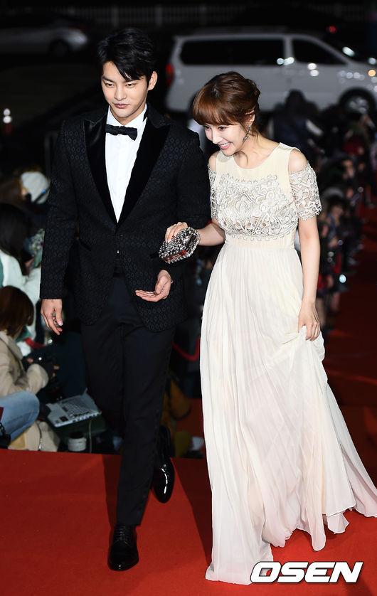 31일 오후 서울 여의도 KBS홀에서 진행되는 '2014 KBS 연기대상'에 앞서 서인국과 박민영이 레드카펫을 밟고 있다.