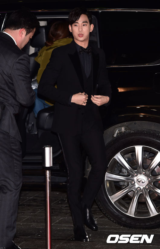 31일 오후 서울 삼성동 코엑스홀에서 진행된 2014 'SBS 어워즈 페스티벌 연기대상'(이하 SBS 연기대상)에 앞서 배우 김수현이 차에서 내리고 있다.