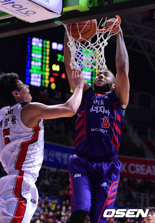 31일 오후 고양체육관에서 열린 '2014-2015 KCC 프로농구' 고양 오리온스와 울산 모비스의 경기 4쿼터 길렌워터가 덩크를 하고 있다.